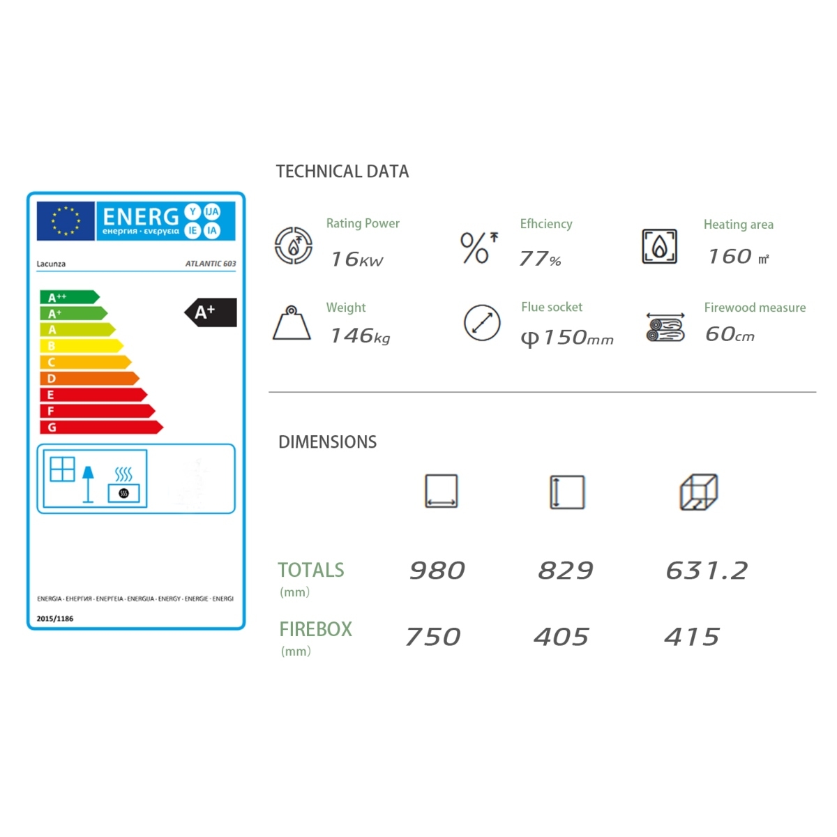 Homepage Stoves Wood-burning stoves Wood-burning stove Elios, Art Flame, 829x980x631 mm, 16kW