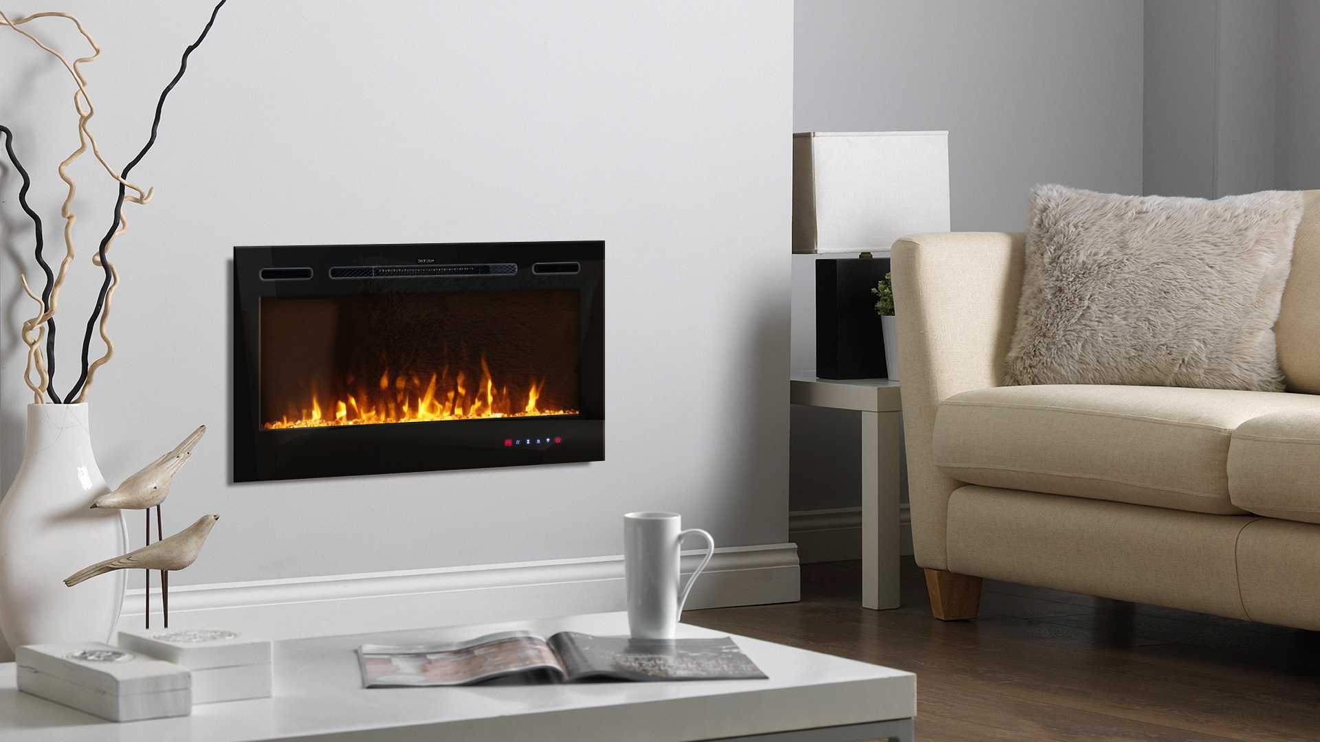 Homepage Electric Fireplaces Wall-mounted Adeli recessed and wall mounted electric fireplace, Art Flame, 544x915x140 mm, 1500W, 3 flame colors, 5 flame brightness levels, Logs and crystals