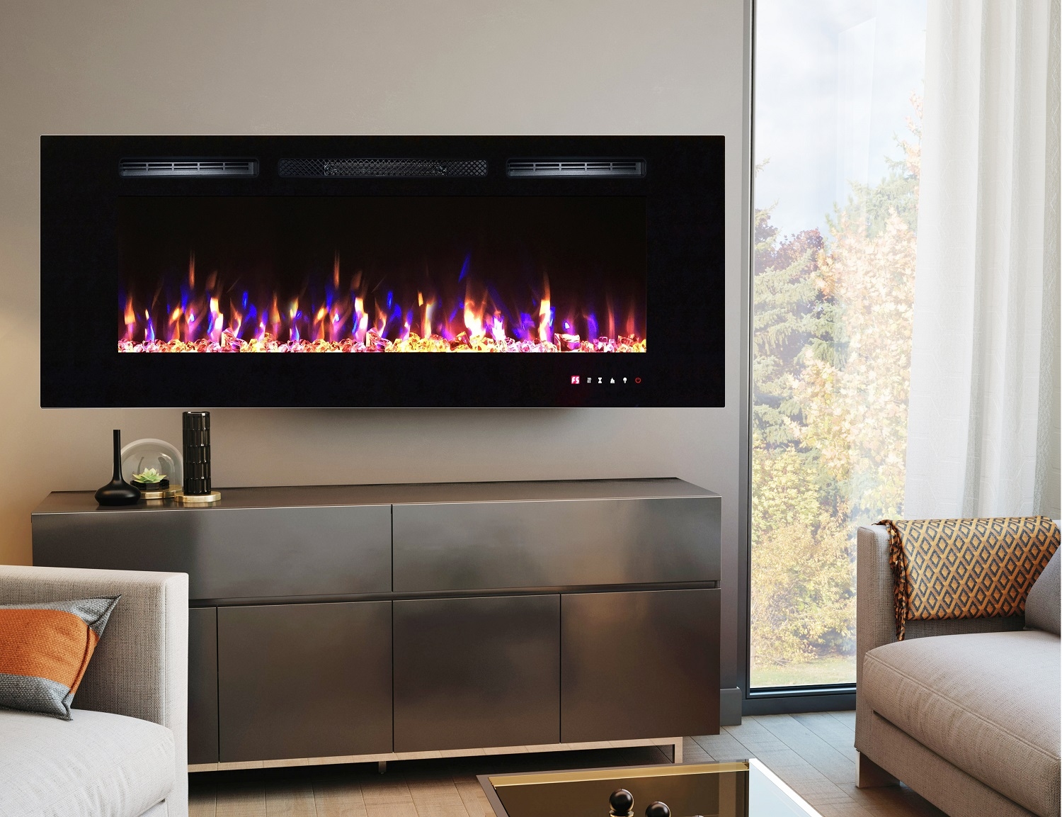 Focar electric modern Heracles, cu efect de flacără realist, care poate decora cu ușurință camera de zi. Acest model poate fi plasat pe perete sau incorporat, la cererea clientului. Funcționalitatea șemineului permite funcționarea în două moduri: modul de încălzire și modul decorativ. Căldura este distribuită în întreaga cameră, folosind un convector silențios. Acest model este destul de economic, puterea sa maximă este de numai 1,5 KW. O altă opțiune frumoasă este lumina de fundal a LED-urilor. Focarul Heracles vă va încălzi în iarna rece și vă va oferi o atmosferă romantică în serile de vară.